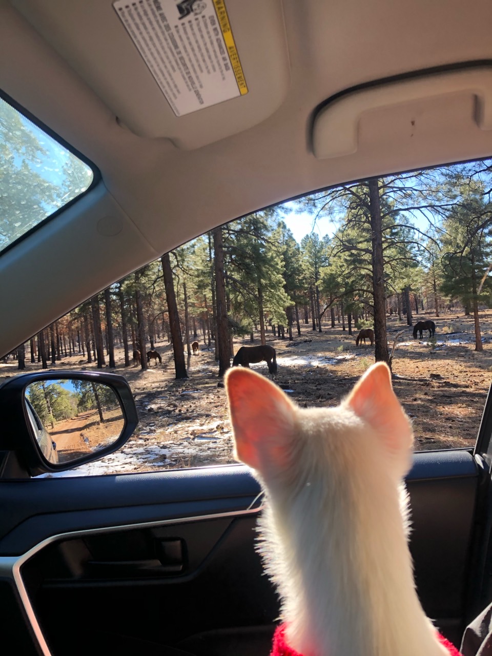 눈을 밟고 저녁을 먹으러 Sedona로 출발했어요!